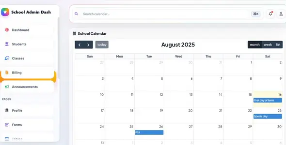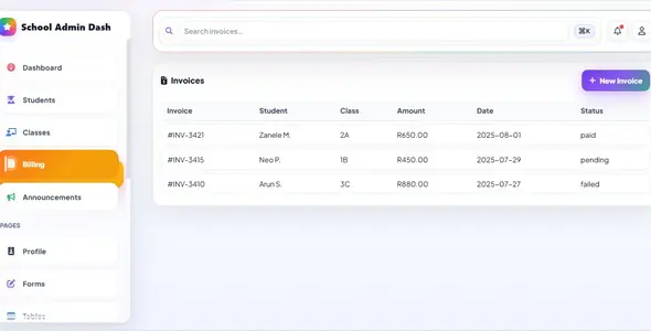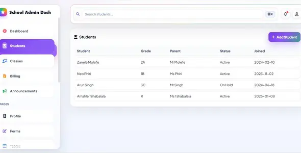 — Dashboard (KPIs, charts, recent payments)students.html